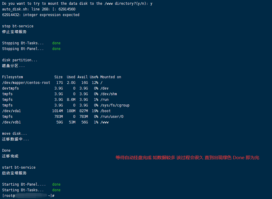 第一步,执行以下命令 (宝塔一键挂载数据盘脚本):
